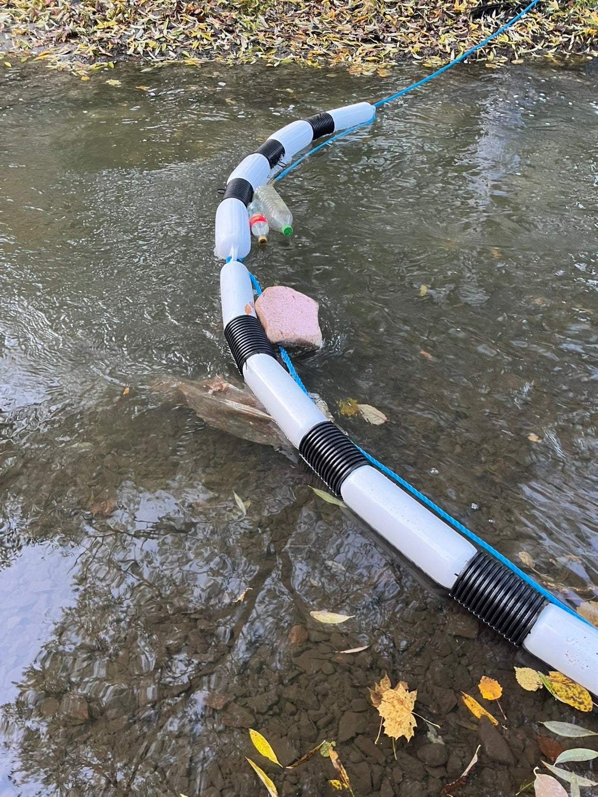 Barrieren er en enkel, men effektiv konstruksjon som flyter i vannet og leder plast, søppel og forurensning inn i et nett og et filter. Den kan festes langs én side av elva uten å blokkere ferdsel eller skade naturen, og samler opp alt fra plastposer og flasker til mikroplast og oljerester.